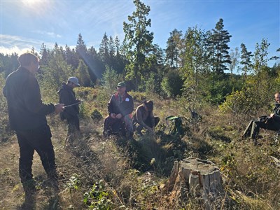 Idag Har vi i BDTK haft ett möte i skogen där klubbens drevdomare var inbjudna för att prata regler samt lyssna på en tax.